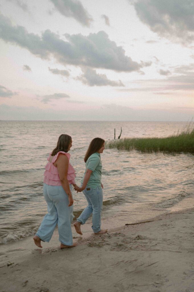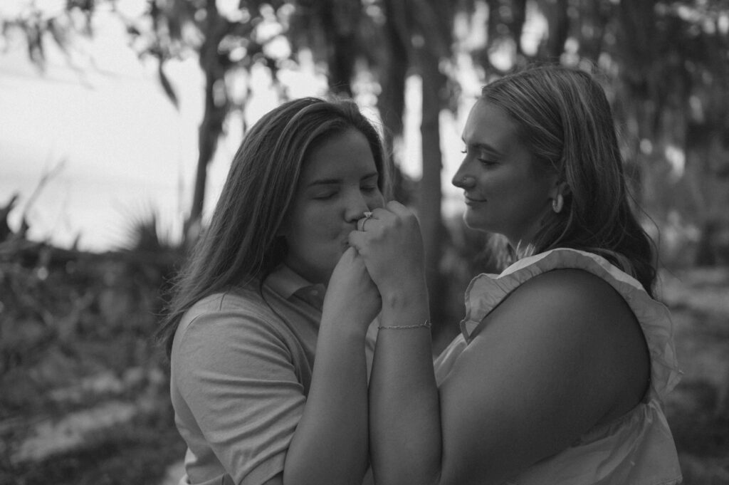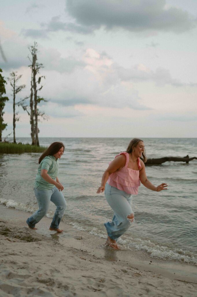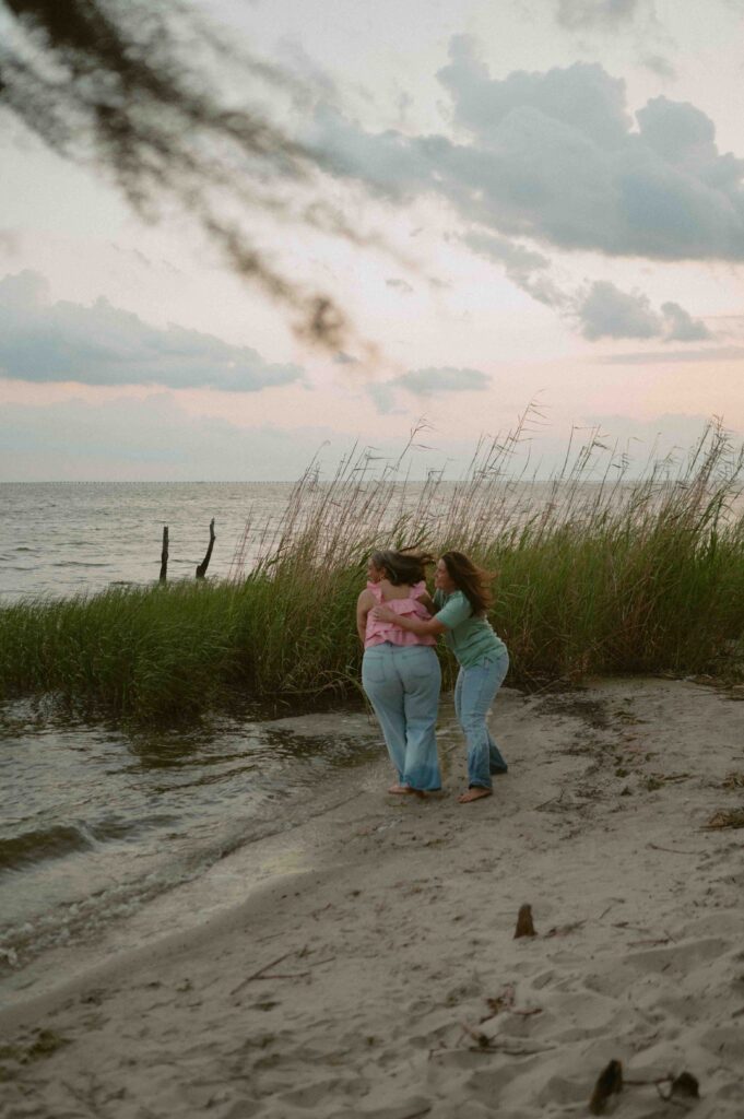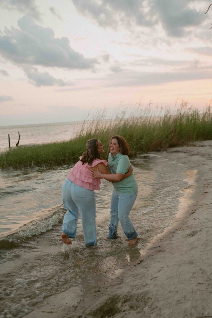 In the midst of wedding planning, hectic schedules, and life in general, we don’t often get dedicated one-on-one time with our partners. Date nights are often few and far between, which is why I want this to feel like a date. I always start my sessions by saying “I want you to feel like you’re on a date. So, interact with each other. Talk, laugh, play, and let yourself have this time together.”, and these two quite literally understood the assignment. Throughout the entire session, their love for each other and genuine chemistry was so palpable and so easily photographed. Alexis and Taylor spent the day running around on the beach, dancing under the cypress trees, drawing hearts with their initials in the sand, and melting into each other while watching the sunset on the water.