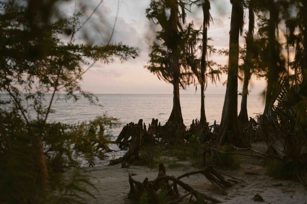 Fontainebleau State Park is definitely one of my favorite places to explore near New Orleans. Less than an hour drive away from the French Quarter, it never feels too busy and has so much to offer. The huge oak trees and large open fields allow for room to run around, and the beach surrounded by stunning old cypress trees can make you feel like you’re in a rom com. At sunset, everything is washed in a golden light that just makes the entire engagement photo session experience feel extra romantic. When I am looking for the perfect location for a cinematic engagement session filled with movement and fun, Fontainebleau State Park is always high on my list.